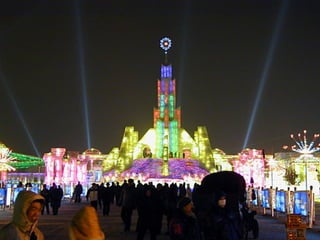 2) The festival has grown significantly over the years since starting in 1985 and now attracts millions of tourists. Teams are given blocks of snow and ice to carve elaborate sculptures that cover kilometers of the festival area.