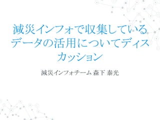 減災インフォで収集している データの活用についてディス カッション 減災インフォチーム 森下 泰光