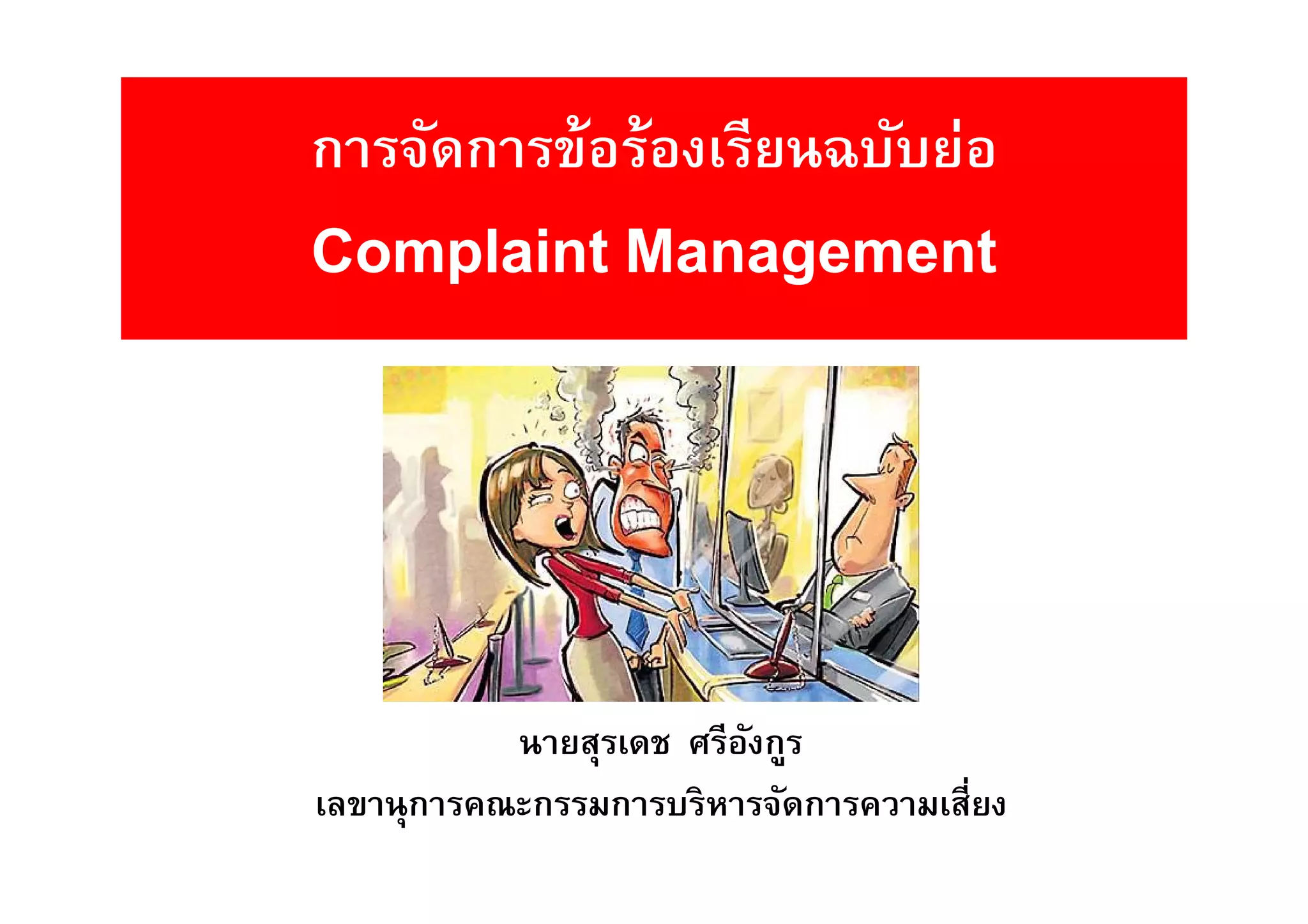 เอกสารฉบับนี้เป็นเอกสารการจัดการข้อร้องเรียนฉบับแก้ไข จากที่ได้เคยนำเสนอไปแล้ว เพราะการจัดการข้อร้องเรียนคือกระบวนการที่ช่วยพัฒนาและแก้ไขสิ่งสำคัญที่สุดคือคือการให้การช่วยเหลืออย่างเต็มที่