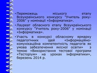 • Лауреат обласного етапу Всеукраїнського