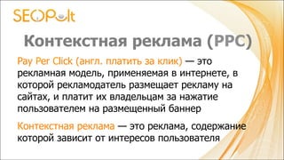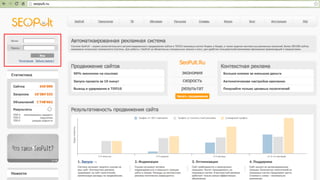 Документ описывает автоматизированное управление контекстной рекламой в системе Seopult и включает цикл вебинаров по эффективному запуску рекламных кампаний в Яндекс.Директе. Рассматриваются ключевые шаги, такие как подбор ключевых слов, установка бюджетов и оптимизация рекламного проекта. Автором является Дмитрий Арсютин, руководитель отдела автоматизации контекстной рекламы в Seopult.