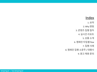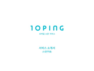 실시간 모바일 소문 서비스 텐핑의 서비스 소개서입니다. 텐핑에서 소문을 내고자 하는 소문주들을 위한 내용이 포함돼 있습니다.