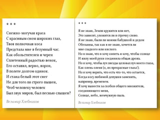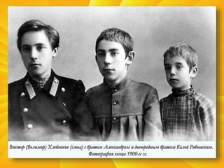 Документ охватывает жизнь и творчество русского поэта-в футуриста Велимира Хлебникова, его эксперименты с языком и роли в поэтическом движении серебряного века. Хлебников, родившийся в 1885 году, был новатором в языке и литературе, создавая заумные тексты и вливаясь в футуристические тенденции. Его работы отражают глубокие философские размышления и предвосхищают события будущего, включая российскую революцию.