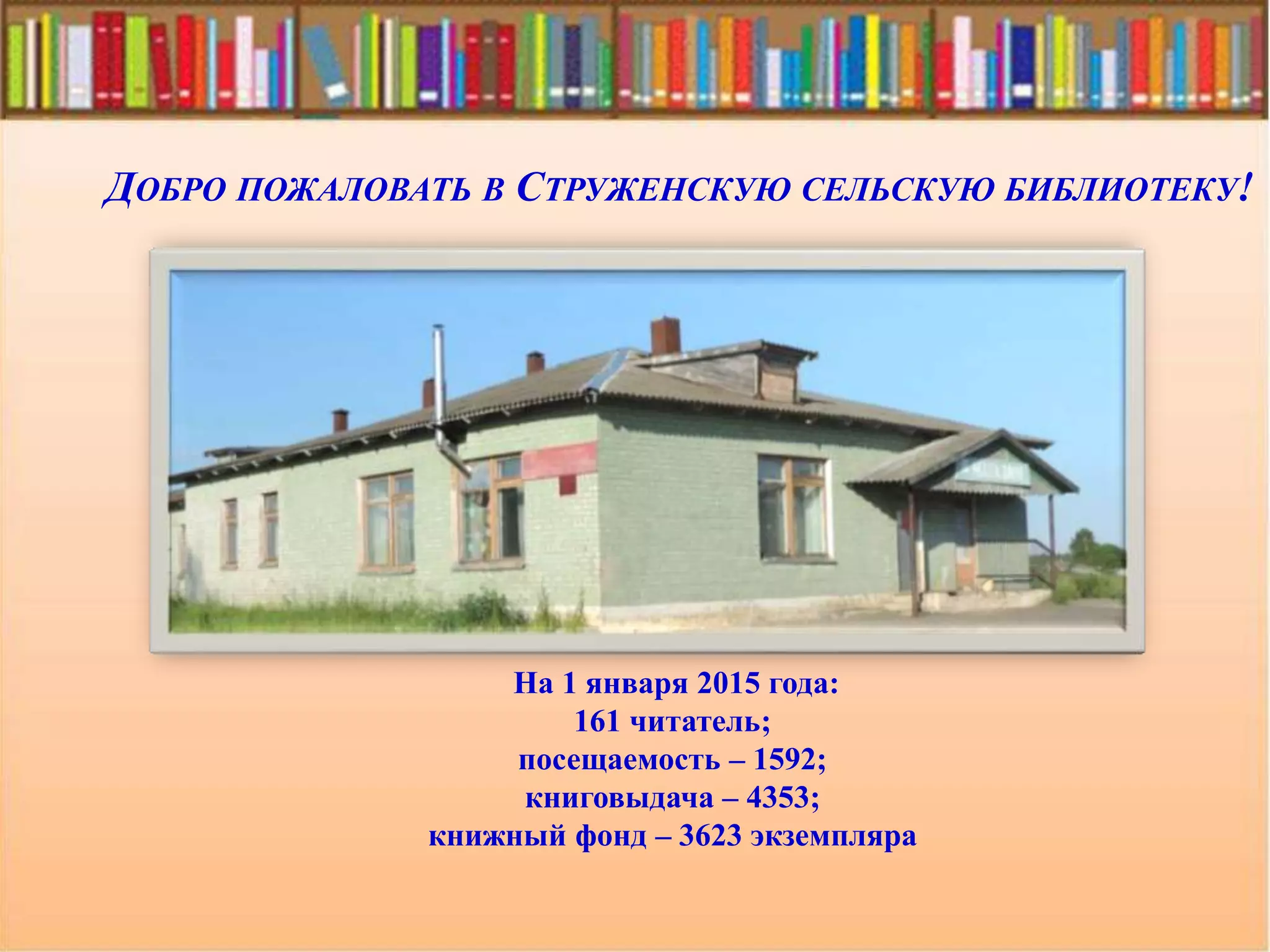 Струженская сельская библиотека активно обслуживает 161 читателя и организует множество мероприятий, включая творческие конкурсы, встречи с ветеранами и образовательные акции, приуроченные к памятным датам. Библиотекари, такие как Ольга Витальевна Ежова, важны для сообщества, обеспечивая интересные экскурсии и занятия для детей. Библиотека также ведет активную работу в интернете и сотрудничает с различными организациями для расширения своих услуг.
