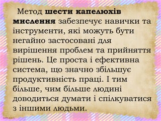 3. Метод шести капелюхів можна використовувати на будь-якому рівні