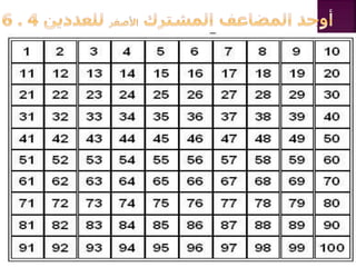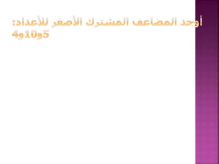 يتناول المستند موضوع المضاعف المشترك الأصغر للعددين، حيث يقدم أمثلة توضيحية. كما يتضمن تعليمات عن كيفية التواصل إلكترونيًا بين الأفراد، مع ذكر جدول زمني مخصص لذلك. الوثيقة تشمل أيضًا تمارين ذات صلة بالمضاعفات.