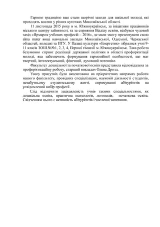 профорієнтаційну роботу, старший викладач Олена Дрозд.