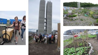 ByBi 養蜂をしている しかし、目的は啓発 伝統的な養蜂連盟の下に入っているが、ユニークな活動をしている 社会的起業でもある 環境デイを蜂のかっこをしたりして祝ったりする 蜂は、環境大使。 蜂の住まいはどんどん減っている 地表の85%は人間活動の結果変容している 農業も花を減らしてしまう 蜂のほかにも授粉昆虫はたくさんいる 都市には可能性がある 農地の花が減っている一方都市には花がある 特にたくさんの人が住んでいるので、啓発として有効 蜂の回廊というプロジェクトを始めた 基地を三か所つくる(オスロの西部、中部、東部) 科学的知識とビジネスの力を借りて、この地域の問題意識を見つけたい 地図づくり 蜂や授粉昆虫を見つけたらネット上のマップに上げていく レストラン=花 ホテル=住まい ビジター=ほかの授粉昆虫 そのほか、イベントや実現したいことなどもアップしていく この地図を世界中に広げていきたい 小さな行動が、景観を創りだしていく そして、人と人との関係、人と他の種との関係、人と水などの大切な要素の関係が変わっていく ミツバチは食べ物を得ることで授粉という形で他に価値を与える 私たちもこのプロジェクトで景観を変えて、蜂に価値を返していきたい 環境プロジェクトには創造性が必要 車をなくすだけではビジネスがうまくいかなくなる 持続性への配慮が必要 ビジネスとの協力 屋上に蜂を飼いたいと言ってきてもダメ そうするなら、まず花を植えてもらうのが先 養蜂箱だけ持つのはだめ 教会との協力 教会の庭に花を植えていく 観光局との協力 観光客が通るルートに花を植えていく 種を配ってみんなをつなげていく アートもエコロジーと相性がいい アートは、ストーリーや感情を伝えるのに向いている 栽培もいい 場所が具体的にあり、一緒に働ける