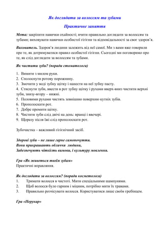 те, як слід доглядати за волоссям та зубами.