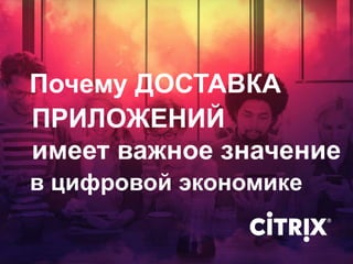 Документ обсуждает важность доставки приложений в цифровой экономике, подчеркивая, что пользователи требуют высокой производительности и надежности. Citrix и его продукт Netscaler предлагают решения для повышения эффективности работы сотрудников и обеспечения безопасности, что позволяет компаниям сокращать затраты и увеличивать производительность. Приведенные примеры, такие как работа с Bet365 и Rhätische Bahn, иллюстрируют, как правильно организованная доставка приложений способствует улучшению обслуживания клиентов и оперативной эффективности.
