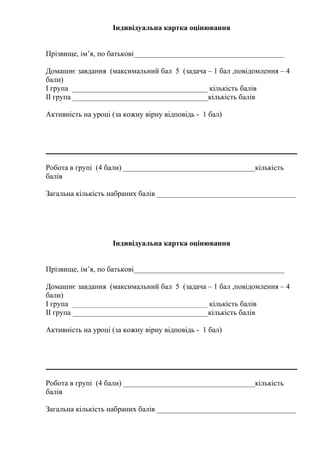 Індивідуальна картка оцінювання