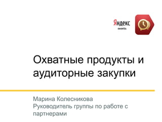 Документ представляет рекламные решения Яндекса, направленные на максимизацию охвата аудитории и повышение узнаваемости бренда. Он описывает успехи рекламных кампаний и предоставляет данные о росте интереса и переходов на сайты рекламодателей. Технология Real Time Bidding и таргетинг также обсуждаются как ключевые инструменты для эффективной рекламы.