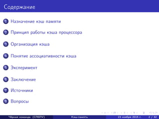 Исследование работы кэш-памяти центрального процессора описывает принципы работы, организацию и стратегии кэширования данных с использованием различных алгоритмов. В работе рассматриваются характеристики кэш-памяти, задачи кэширования и эксперименты с конфигурацией кэш-памяти для оптимизации вычислительных нагрузок. Основное внимание уделяется моделированию кэш-памяти, используя результаты бенчмарка 'ливерморские циклы'.