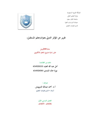 الوثيقة تتناول مؤتمرًا حول التعليم والتقنيات في السعودية، مع التركيز على التعليم المستدام وتأثيره على الطلاب. يتم مناقشة نماذج تعليمية متعددة ونسبة التنافسية بين الطلاب كجزء من تطوير النظام التعليمي. وقد تناولت الوثيقة أيضًا أهمية تقديم الدعم المهني للمعلمين وتحسين بيئة التعليم.