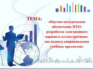 Документ описывает научно-методическое обеспечение профессионально-технического образования через разработку электронных образовательных ресурсов. Основные цели включают активизацию методической работы и совершенствование образовательных практик для повышения качества знаний учащихся. Также приводится информация о безопасных условиях труда при работе с швейными машинами и инструментах маникюра и педикюра.