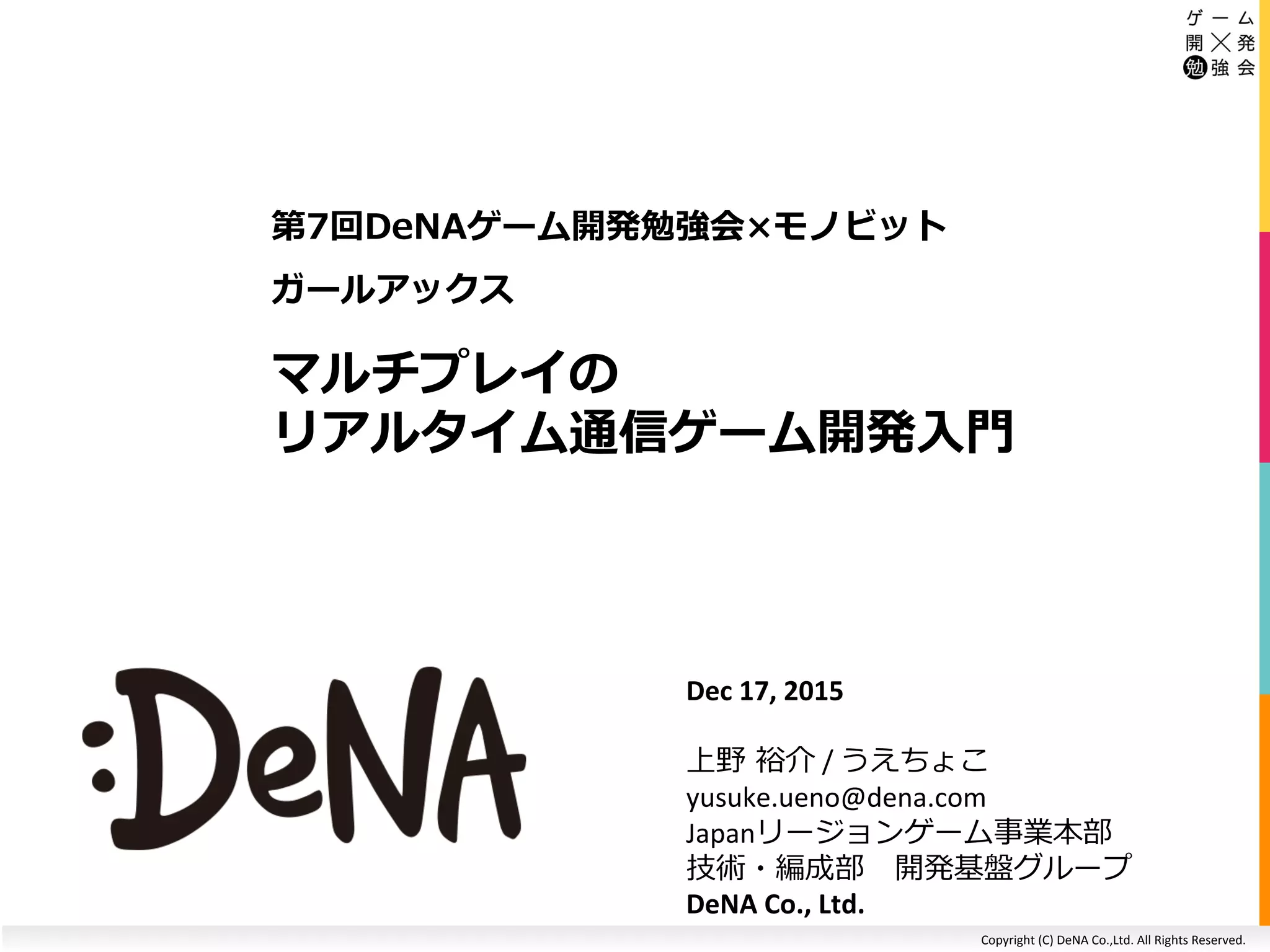 ガールアックス マルチプレイのリアルタイム通信ゲーム開発入門 1. 2. 3. Copyright (C) DeNA Co.,Ltd. All Rights Reserved.
