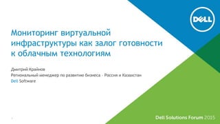 Документ рассматривает важность мониторинга виртуальной инфраструктуры для обеспечения готовности к облачным технологиям и подчеркивает, что потери от простоя могут достигать $9,997 в час. Он предоставляет обзор решений Dell Software для управления и оптимизации виртуализации, включая мониторинг производительности и аналитические возможности. Также упоминаются планы развития продукта, включая управление емкостью и поддержку новых технологий.