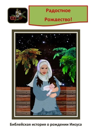 Документ представляет собой библейскую историю о рождении Иисуса Христа, акцентируя внимание на Марии и Иосифе, которые приняли божественный замысел о рождении Божьего сына. Рассказ охватывает визит архангела Гавриила, чудо рождения Иоанна Крестителя, а также обстоятельства, при которых Иисус родился в хлеву в Вифлееме. В заключение отмечается важность принятия даров вечной жизни и возможности поделиться этой историей с другими.