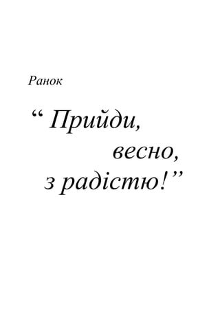 Вчитель:“ Прийди, весно, з радістю” - так називається наше свято. Весну