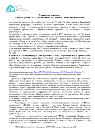 Документ информирует родителей детей с ограниченными возможностями здоровья о правах и процедурах получения социальных услуг и образования. С 2015 года действуют законы, регулирующие социальное обслуживание и организацию образовательного процесса для данной категории детей. Родители могут обратиться за помощью в районное управление социальной защиты, чтобы получить индивидуальные программы социальных услуг и специальные условия для обучения.