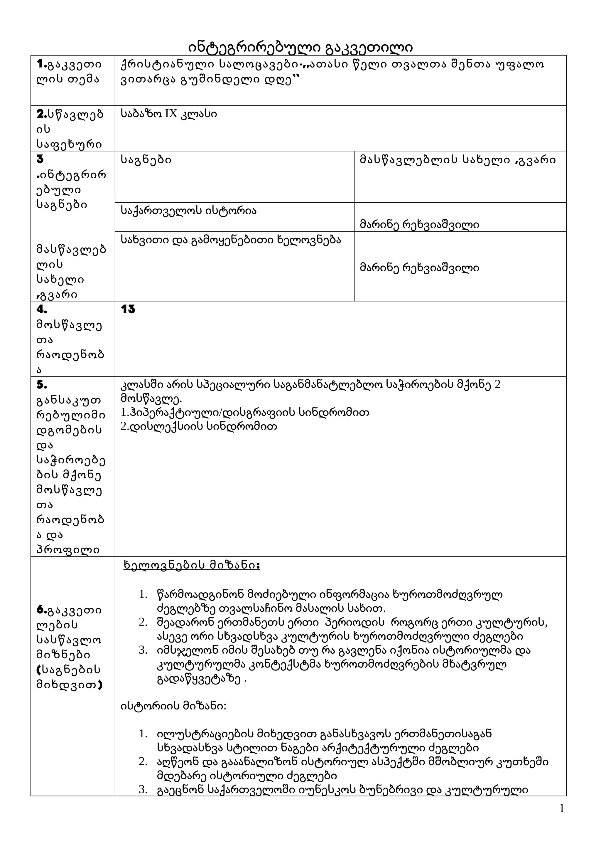 მოსწავლეებს საქართველოს ისტორიაში უკვე განვლილი აქვთ შესაბამისი