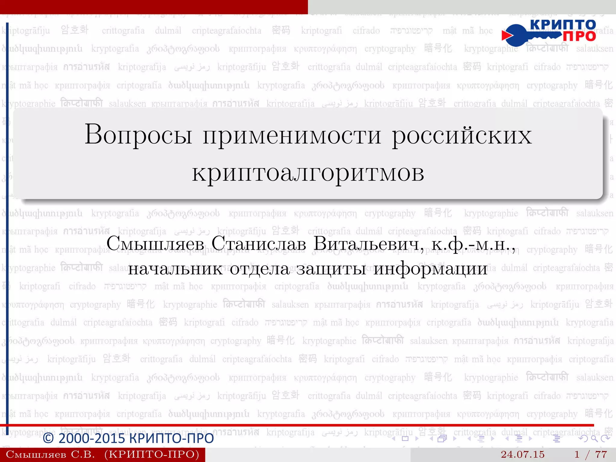 Документ анализирует состояние и проблемы российской криптографии, подчеркивая устаревшие решения и недостатки в продуктах, включая слабую устойчивость и низкую производительность некоторых алгоритмов. Критика в адрес российских криптографических решений часто не конструктивна и обобщенная, создавая ложное представление о плохом качестве. Рассматриваются также конкретные алгоритмы и их стойкость, а также необходимость перехода на новые стандарты для повышения безопасности.