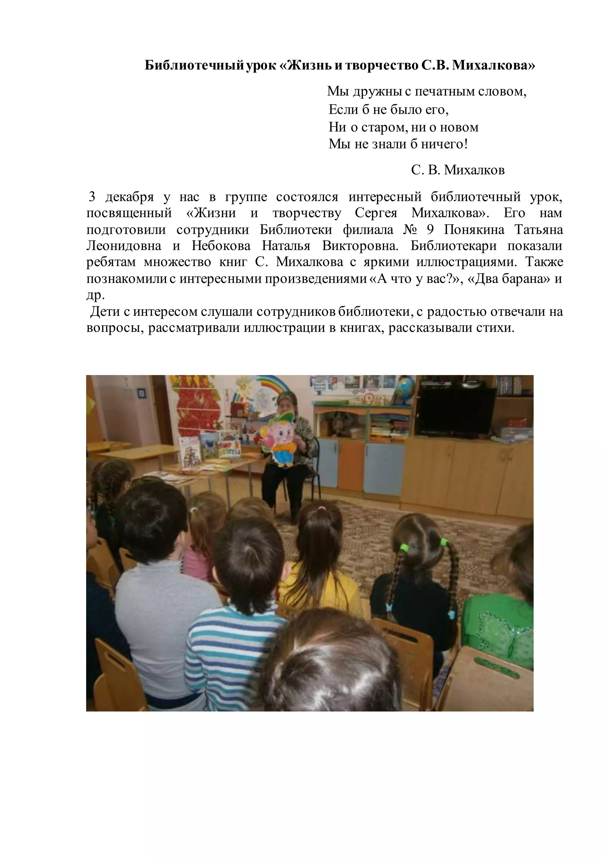 На библиотечном уроке, посвященном жизни и творчеству Сергея Михалкова, ребята познакомились с его книгами и произведениями. Сотрудники библиотеки представили интересные материалы и яркие иллюстрации. Дети активно участвовали, задавая вопросы и делясь стихами.