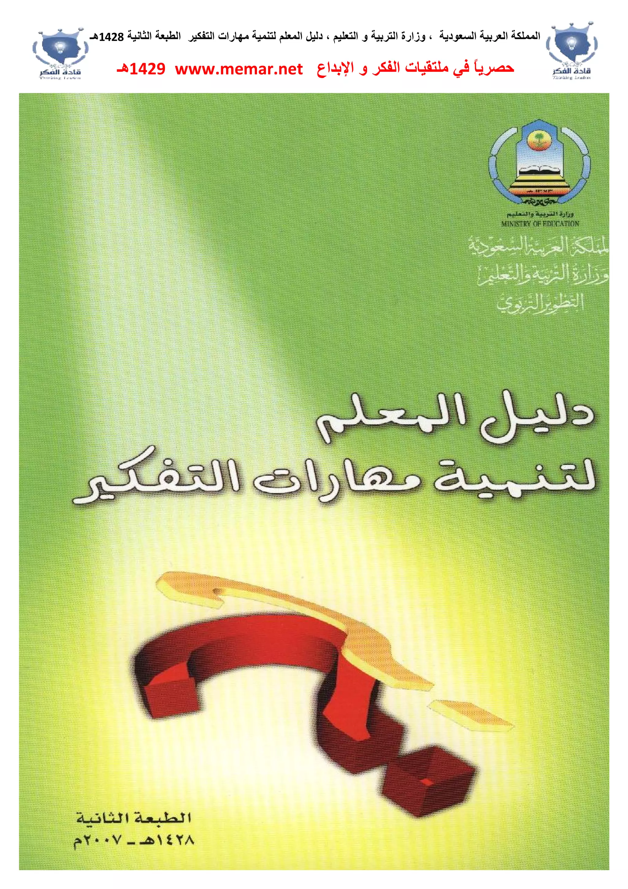 و اﻟﺘﺮﺑﯿﺔ زارة،اﻟﺘﻔﻜﯿﺮ ﻣﮭﺎرات ﻟﺘﻨﻤﯿﺔ اﻟﻤﻌﻠﻢ دﻟﯿﻞاﻟﺜﺎﻧﯿﺔ اﻟﻄﺒﻌﺔ1428ھـ ﻓﻲ ًﺎﺣﺼﺮﯾاﻹﺑﺪاع و اﻟﻔﻜﺮ ﻣﻠﺘﻘﯿﺎتwww.memar.net1429ھـ