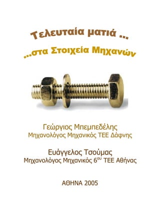 ΥΠΟΛΟΓΙΣΜΟΙ –ΕΠΙΛΟΓΕΣ ΣΤΟΙΧΕΙΩΝ ΜΗΧΑΝΩΝ
