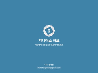 지니어스 허브는 근처 3D 프린터를 연결해주는 커뮤니티 마켓플레이스입니다