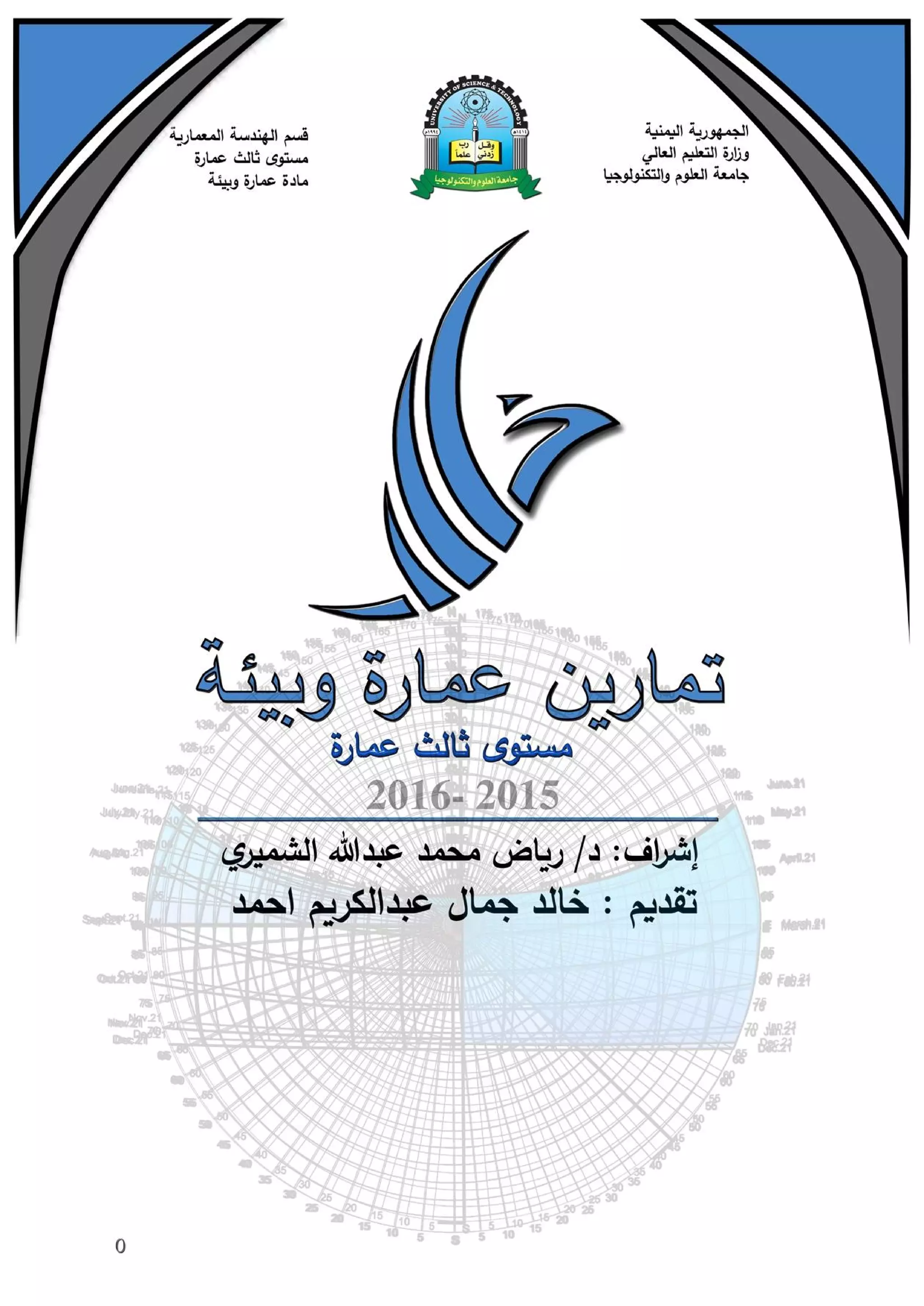 جامعه العلوم والتكنولوجيا مادة عمارة وبيئة د/رياض الشميري تمارين محلولة لمادة عمارة وبيئة