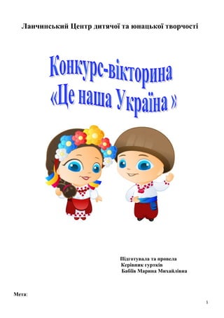 Виховна: виховувати любов до рідної землі, повагу до історичних та культурних надбань українського народу, почуття національної гідності.