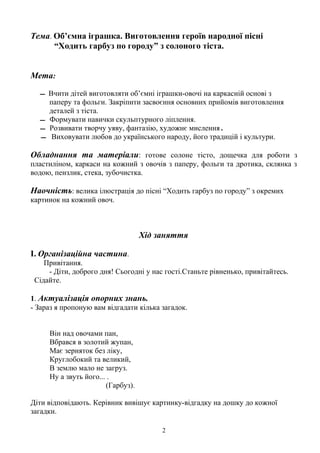 Вчити дітей виготовляти об’ємні іграшки-овочі на каркасній основі з паперу та фольги. Закріпити засвоєння основних прийомів виготовлення деталей з тіста.