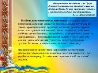 національно-патріотичного виховання дітей і молоді та Методичні
