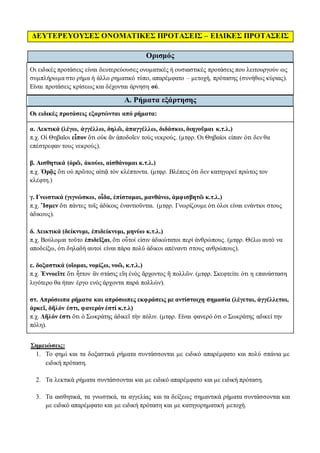 ΔΕΥΤΕΡΕΥΟΥΣΕΣ ΟΝΟΜΑΤΙΚΕΣ ΠΡΟΤΑΣΕΙΣ– ΕΙΔΙΚΕΣ ΠΡΟΤΑΣΕΙΣ