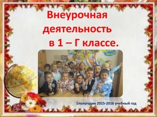 Документ описывает внеурочную деятельность в 1-м классе за первое полугодие 2015-2016 учебного года, охватывая темы украинского языка, такие как знакомство с Украиной, семья, друзья, времена года и зимние праздники. Также упоминаются культурные аспекты, включая добрососедство и памятники архитектуры Крыма. В документе представлены клубы любителей чтения и другие образовательные инициативы.