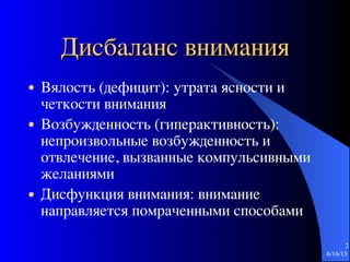 Документ исследует развитие и функции внимания, подчеркивая важность когнитивного контроля и осознанности, особенно в контексте лечения СДВГ. Упоминается, что традиционные медикаментозные методы имеют ограниченный долгосрочный эффект, тогда как практики осознанности могут быть более эффективными. Также обсуждаются исторические и философские аспекты внимания, а также его связь с образованием и внутренней силой.