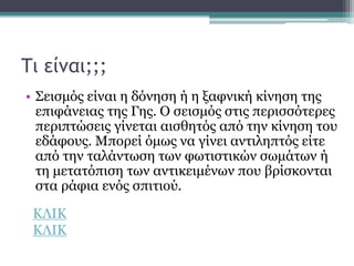 • Σεισμόςείναι η δόνηση ή η ξαφνική κίνηση της
