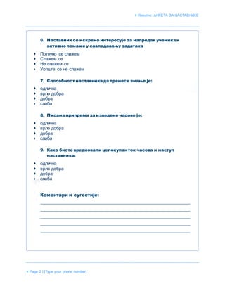Resume: АНКЕТАЗА НАСТАВНИКЕ