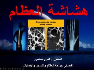 يصيب مرض هشاشة العظام المزيد من الناس مع تقدم العمر ويجعل العظام ضعيفة وقابلة للكسر. تشير الدراسات إلى أن النساء أكثر عرضة للإصابة به مقارنة بالرجال، حيث تصل النسبة إلى 80% من المصابين. تعتبر الوقاية والتحكم في العوامل المؤثرة مثل التغذية وممارسة الرياضة أساسية للحفاظ على صحة العظام.