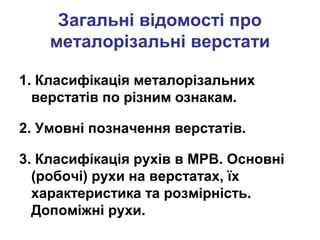 1. Класифікація металорізальнихверстатів