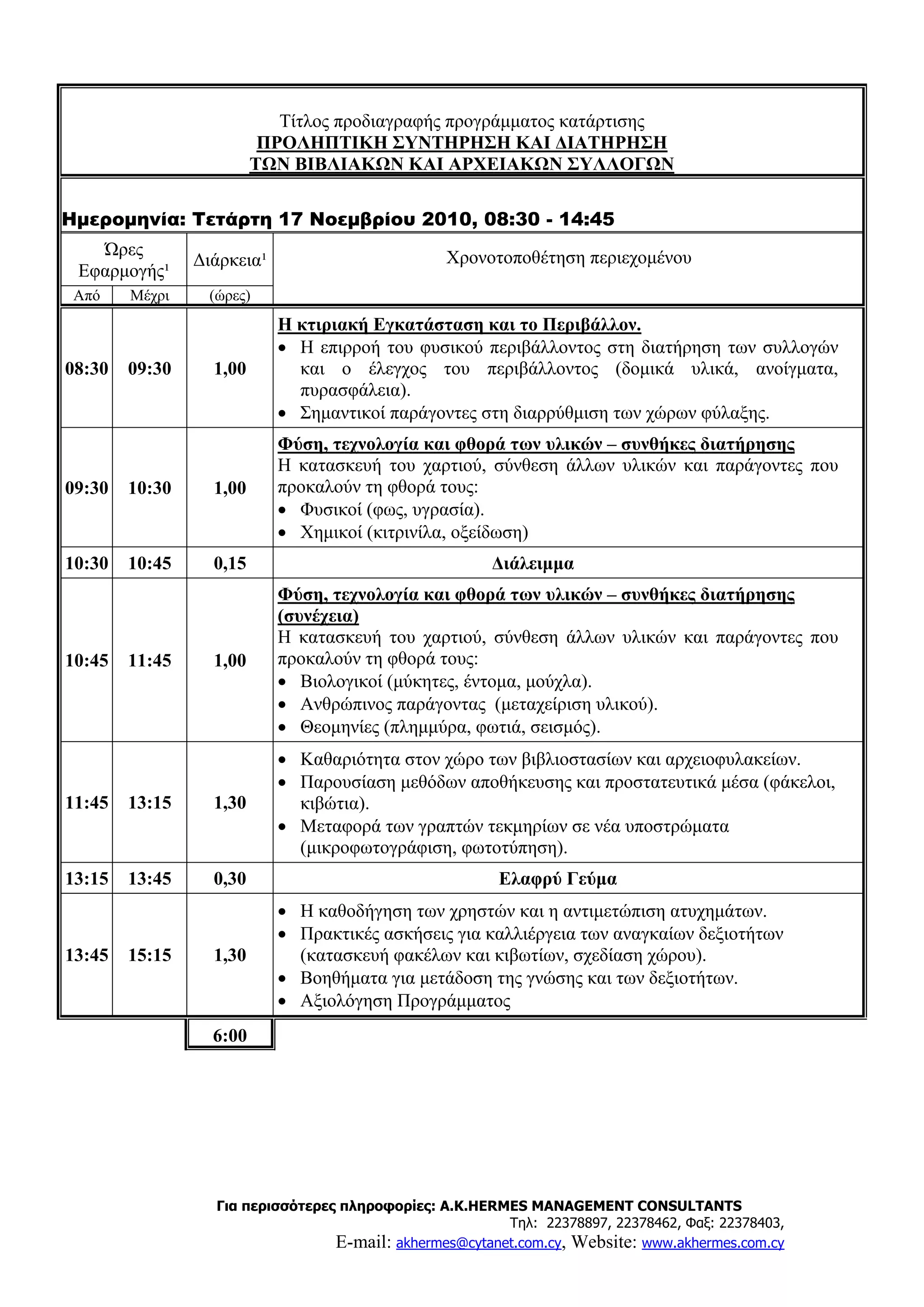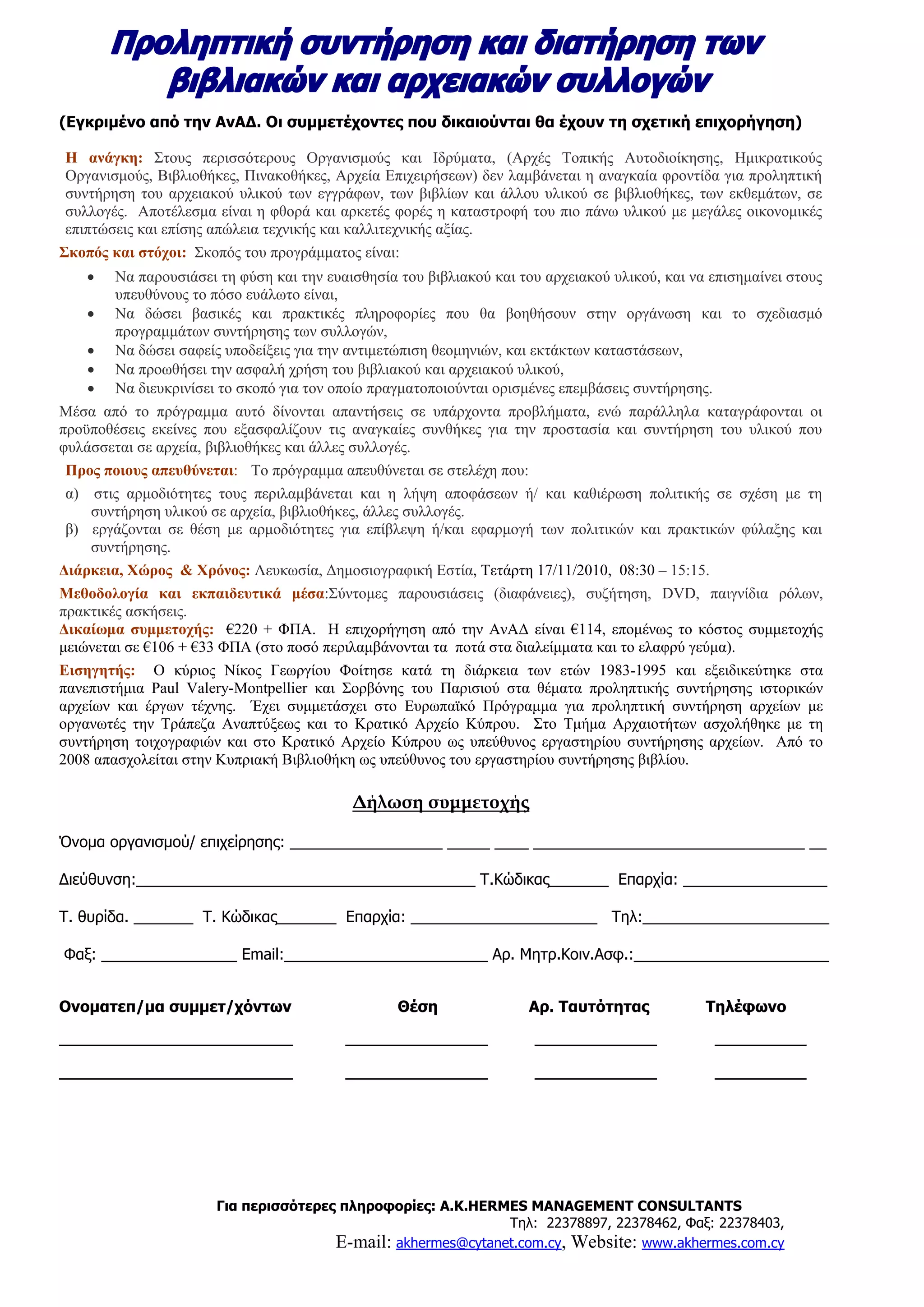 Για περισσότερες πληροφορίες: Α.K.HERMES MANAGEMENT CONSULTANTS