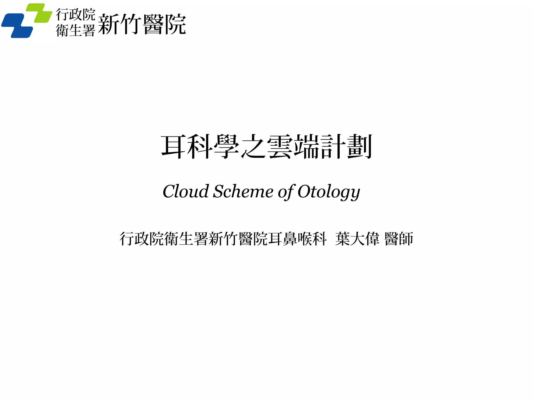 本文件介绍了新竹医院耳鼻喉科的云端计划,旨在利用多种在线平台和工具增强耳科科学的信息传播和交流。提及了不同的数字媒体和社交网络,如YouTube、Facebook和Google应用程序等。通过这些工具,医生能够更有效地分享专业知识和资源。