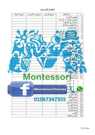 منهج منتسورى .......... للحساب