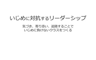 2016.01.15 神奈川の高校で行った「いじめとリーダーシップ」に関する90分の講演セミナーで使用したスライドを一部編集しています。スライド38でご紹介している動画へのリンクはこちら → http://bit.ly/1ddUKvr