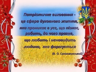 Патріотичне виховання дітейта учнівської молоді – це комплексна, системна і цілеспрямована діяльність органів державної влади, громадських організацій, сім’ї, школи, інших соціальних інститутів.
