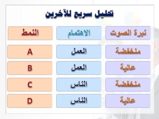 يتناول المستند مواضيع متعلقة بإعداد القيادات وإدارة الأداء الشخصي، مع التركيز على تأثير القدرات العقلية والمزاج على النجاح. كما يستعرض معلومات حول استبيانات هيرمان التي تتعلق بالذكاء والمهارات الشخصية وتأثيرها على عملية التعليم. بالإضافة إلى ذلك، يناقش طرق التحكم في الأداء الشخصي والتخطيط الاستراتيجي لتحقيق الأهداف.