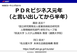 HASCミーティング2015ライトニングトーク 蔵田 武志12 1国立研究開発法人産業技術総合研究所 人間情報研究部門 研究グループ長 2筑波大学 システム情報系 教授(連携大学院) 河口 信夫3 3名古屋大学 未来社会創造機構 教授