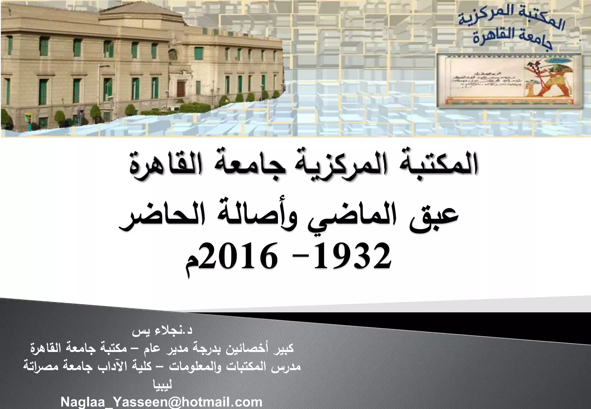 تتناول الوثيقة تاريخ المكتبة الجامعة المصرية منذ نشأتها في عام 1932 وحتى عام 2016، وتستعرض مجموعاتها الضخمة من الكتب والدوريات والمخطوطات التي تغطي مجالات متعددة، بما في ذلك العلوم الإنسانية والاجتماعية. تحتوي المكتبة على ما يقارب 111700 كتاب عربي و187689 كتاب أجنبي، بالإضافة إلى مجموعة متنوعة من المجلات العلمية. تبرز الوثيقة الدور التاريخي والثقافي للمكتبة كمصدر أساسي للمعرفة والبحث.