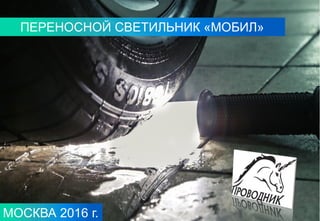 Документ описывает переносной светильник «мобил», который производит компания с собственными мощностями и высоким качеством, в том числе устойчивостью к механическим повреждениям и воздействию внешней среды. Светильники подходят для использования в различных условиях, имеют разные источники питания и гибкие кабели для удобства. Основные преимущества включают долговечность работы до 15 000 часов, защиту от влаги и пыли, а также легкость в транспортировке.